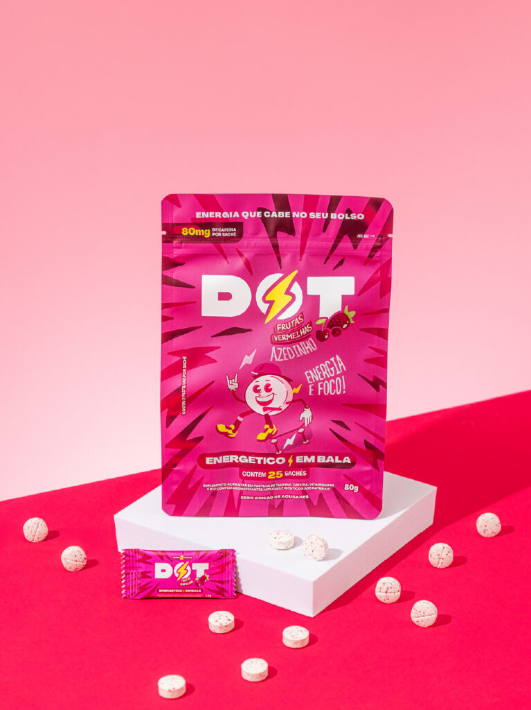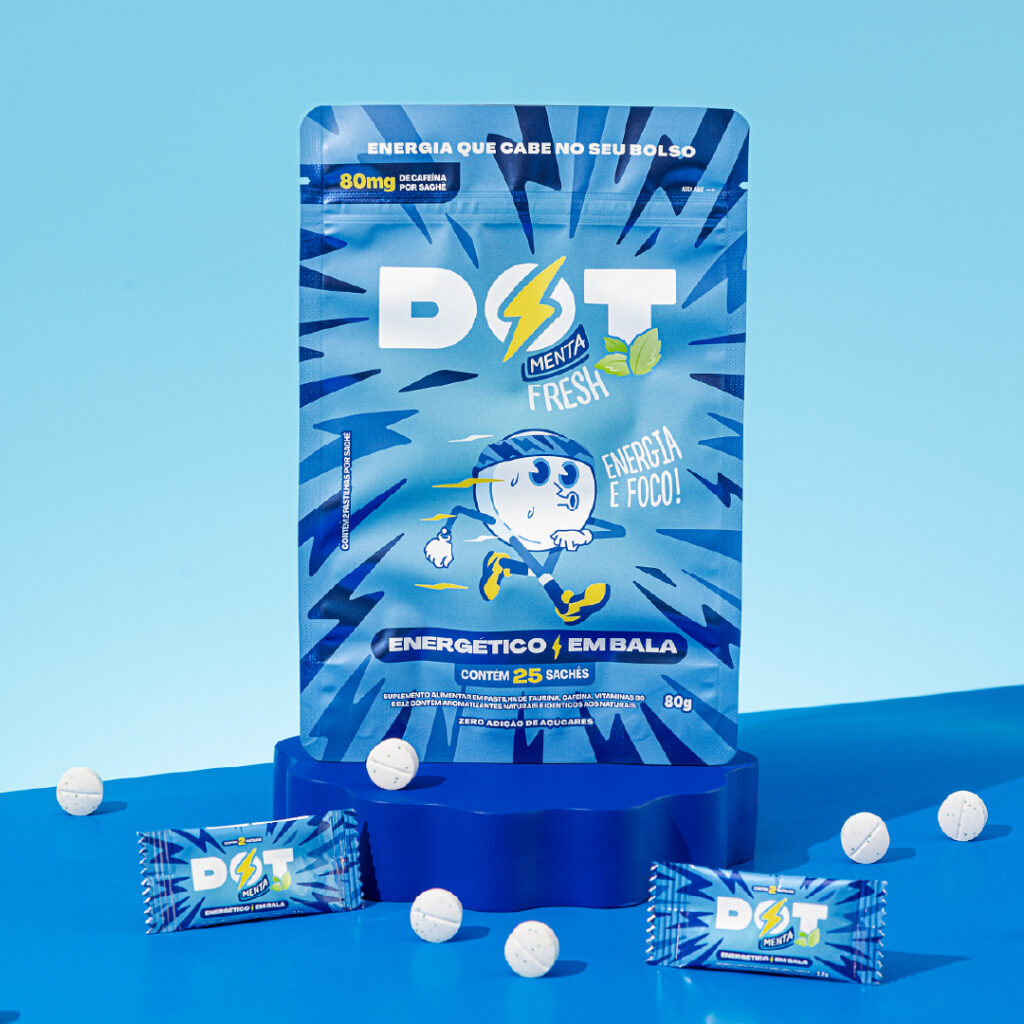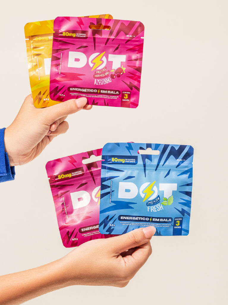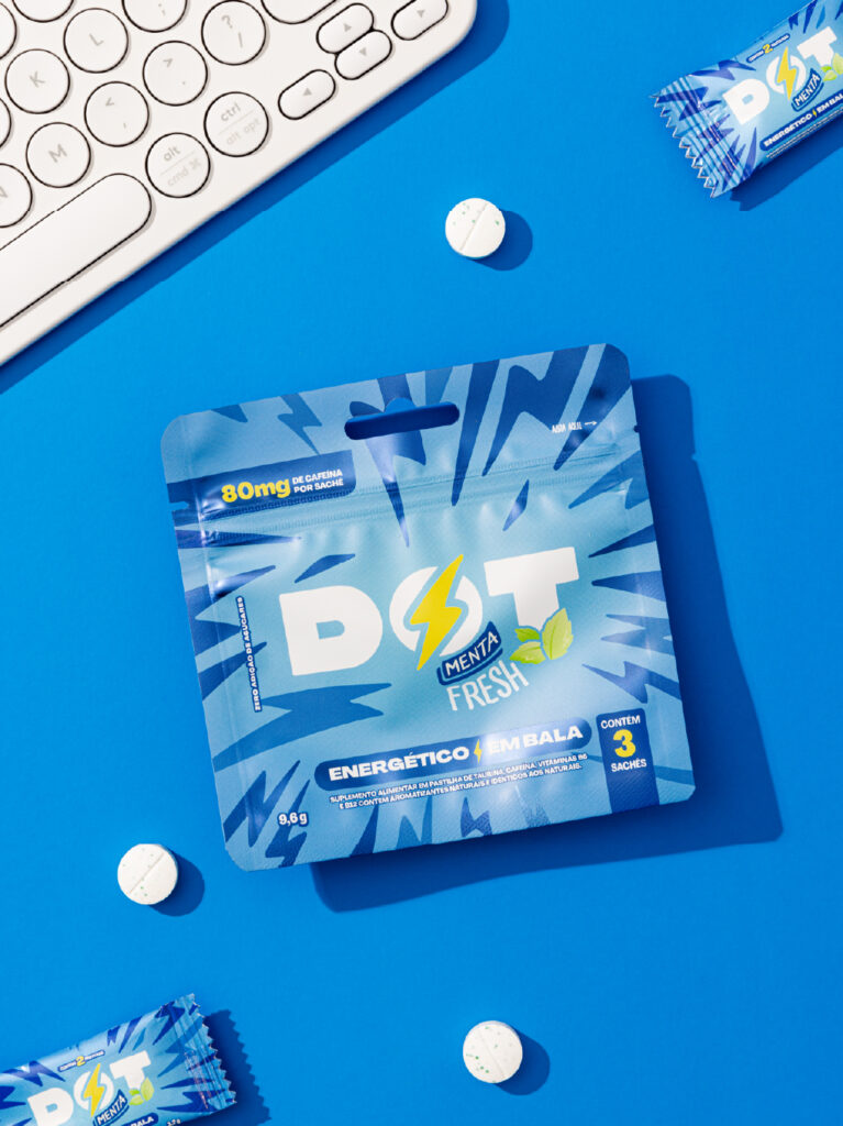 Dotinho is Dot’s mascot, created to represent energy in motion. He embodies the brand’s focus, enthusiasm, and vitality, appearing in moments that call for concentration and energy. Featured across packaging and brand communication, Dotinho brings Dot’s purpose to life, always there when it’s time to activate body and mind.