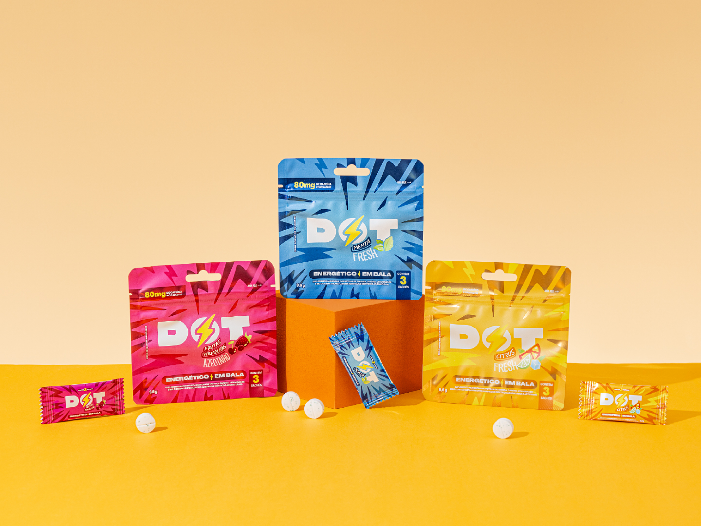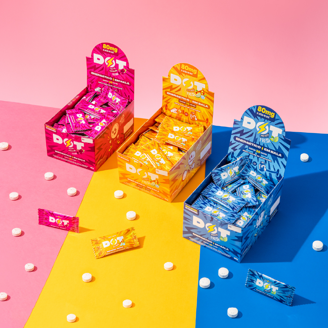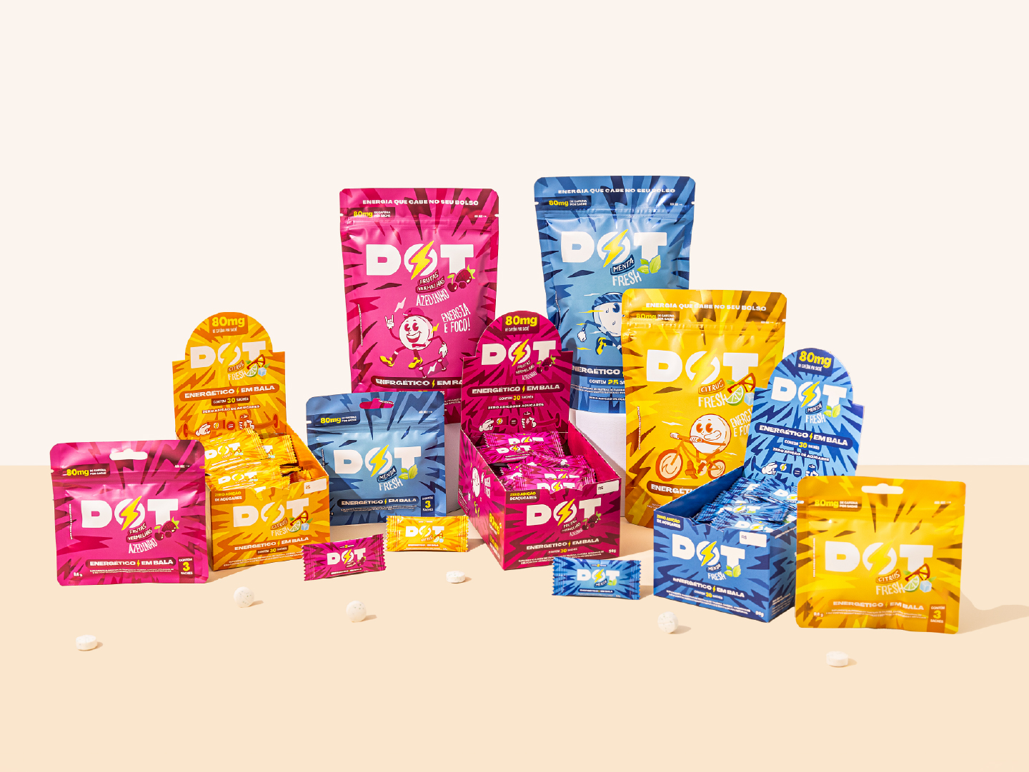 Dotinho is Dot’s mascot, created to represent energy in motion. He embodies the brand’s focus, enthusiasm, and vitality, appearing in moments that call for concentration and energy. Featured across packaging and brand communication, Dotinho brings Dot’s purpose to life, always there when it’s time to activate body and mind.